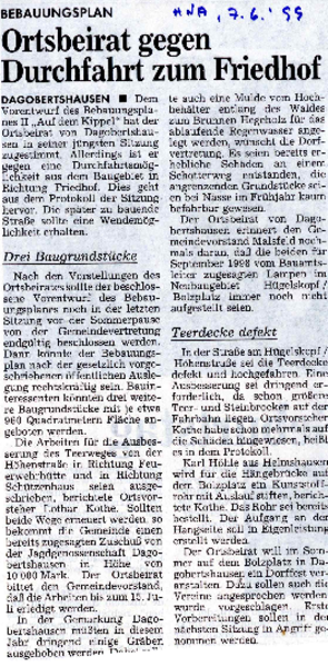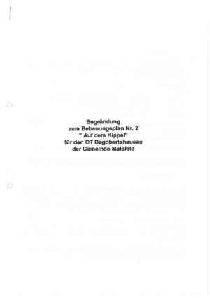 Anl. sehen sie den Bebauungsplan Nr 2 ‘Auf dem Kippel’ für die Gemeinde Dagobertshausen. Er trat am 28.10.1999 in Kraft.