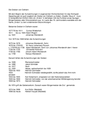 Heinrich Schneider war von 1930 bis 1933 gewählter Bürgermeister von Ostheim.1933 wurde er wiedergewählt, durfte sein Amt aber nicht ausüben. An seine Stelle trat für die Zeit von 1933 bis 1945 Karl Ackermann. Nach dem Zusammenbruch des „Dritten Reichs“ wurde Heinrich Hain von der amerikanischen Militärregierung zum Nachfolger von Karl Ackermann berufen. Seine Amtszeit ging von 1946 bis 1959. Bei einer Neuwahl 1959 wurde Heinrich Schneider wieder zum Bürgermeister gewählt. Er war damit der letzte Ostheimer Bürgermeister und wurde 1974 fast 80- jährig aus seinem Amt verabschiedet.Fast durch seine gesamte Amtszeit zog sich ein für die Gemeinde Ostheim seit langem leidiges Problem: die Wasserversorgung....