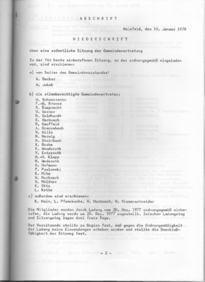 Gemeindepolitik 09. Wahlperiode von 1977 bis 1981