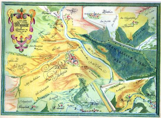 Handgezeichnete Landtafel von Wilhelm Dilich 1607 bis 1622, Spezialtafel des Amtes Melsungen mit Bezirk Malsfeld.