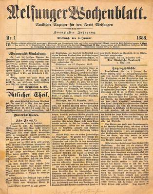 21.01.1888 - Die Firma Ulrich Waldmann in Beiseförth ist erloschen; Amtsgericht. Susanna und Hermann Sandrock, Rücknahme einer Beleidigung.