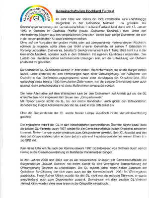 In den anl. PDF-Dateien sind der SPD-Ortsverein und die Gemeinschaftsliste Hochland Fuldatal (GL) aus Ostheim beschrieben.