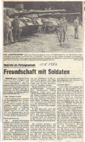 Eine Patenschaft der Gemeinde Malsfeld mit der 4. Kompanie des Panzerbataillon 54 aus Hess. Lichtenau wurde am 08.12.1984 geschlossen; zum 01.10.1992 wurde sie aufgelöst.