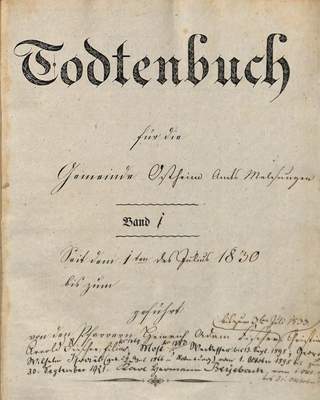 Totenbuch Ostheim der Ev. Kirchengemeinde Sipperhausen 1830 bis 1960